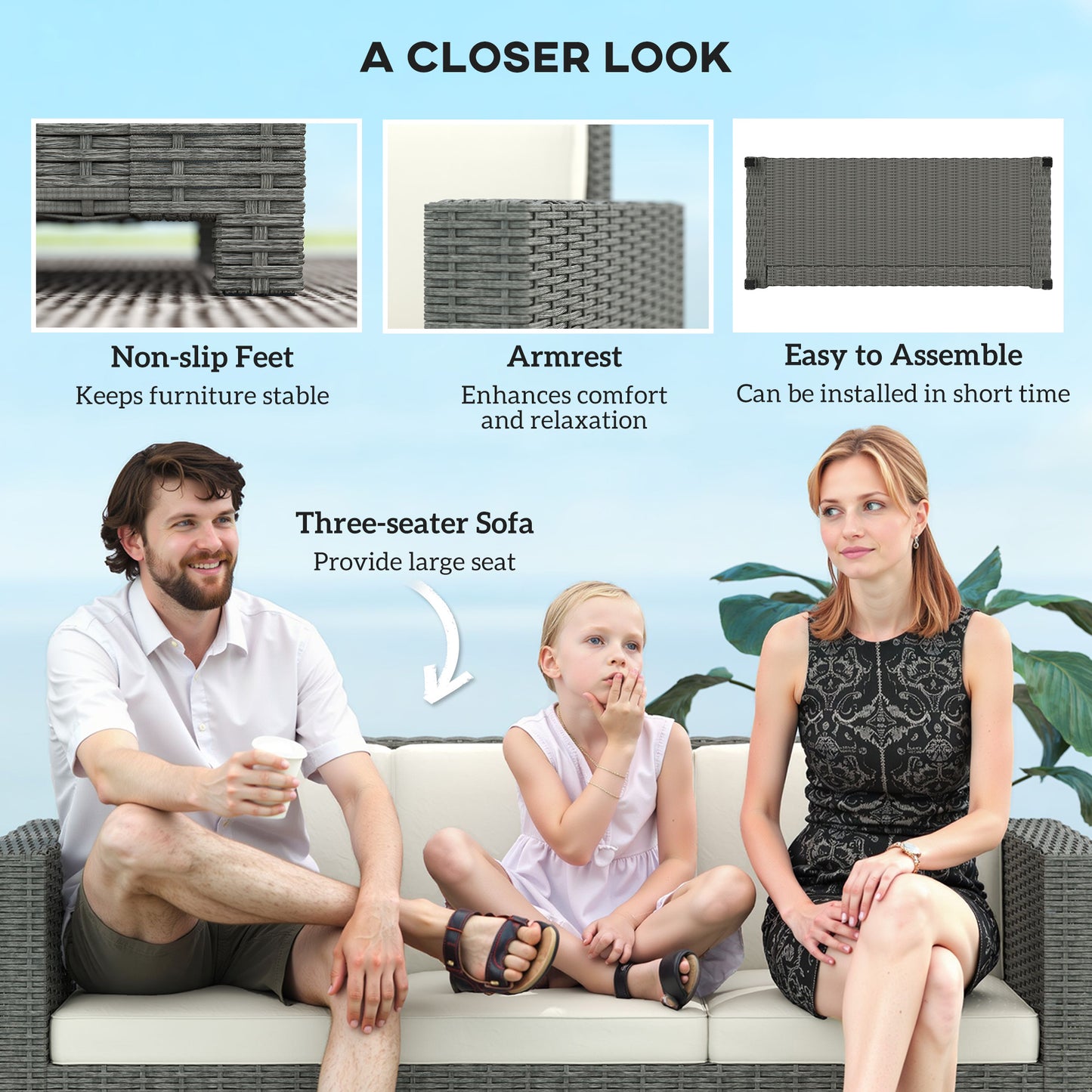Outsunny 3 Seater Rattan Sofa All-Weather Wicker Weave Metal Frame Chair with Fire Resistant Cushio-Cream