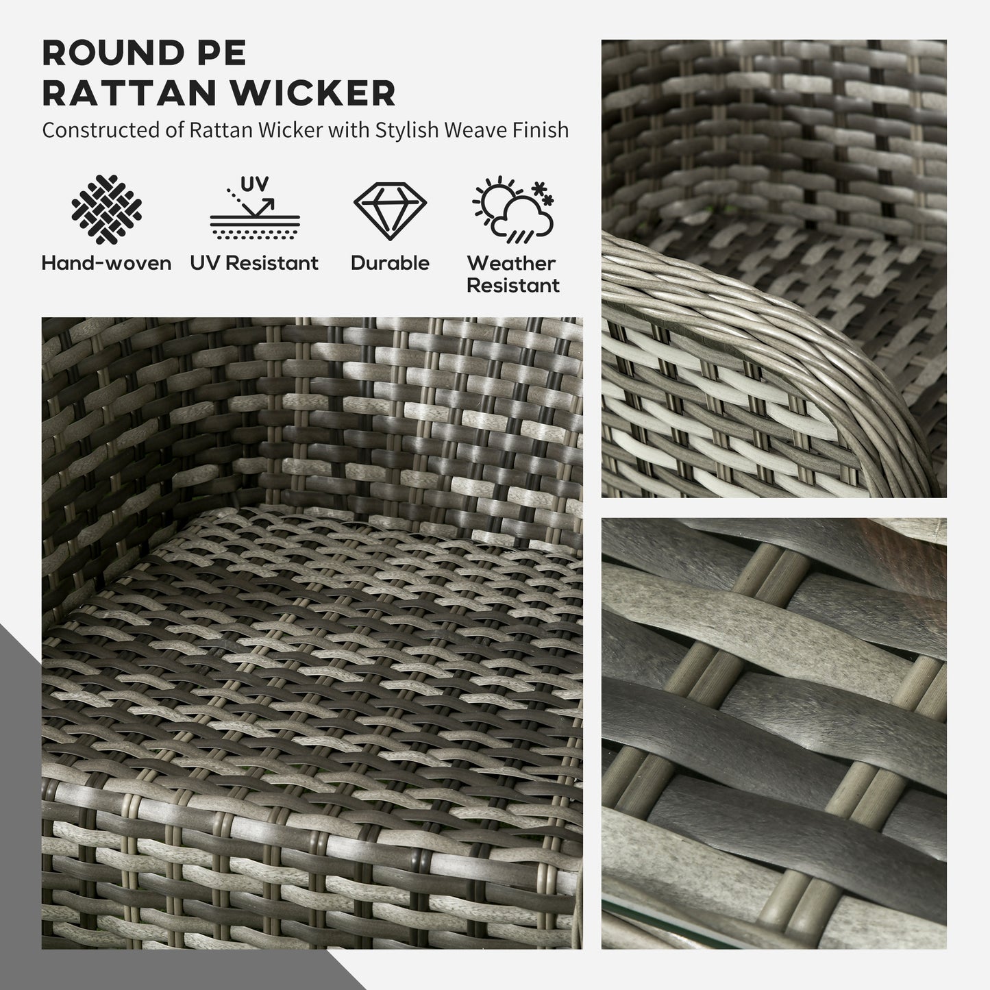 Outsunny Four-Piece Rattan Sofa Set, with Glass-Top Table - Mixed Grey