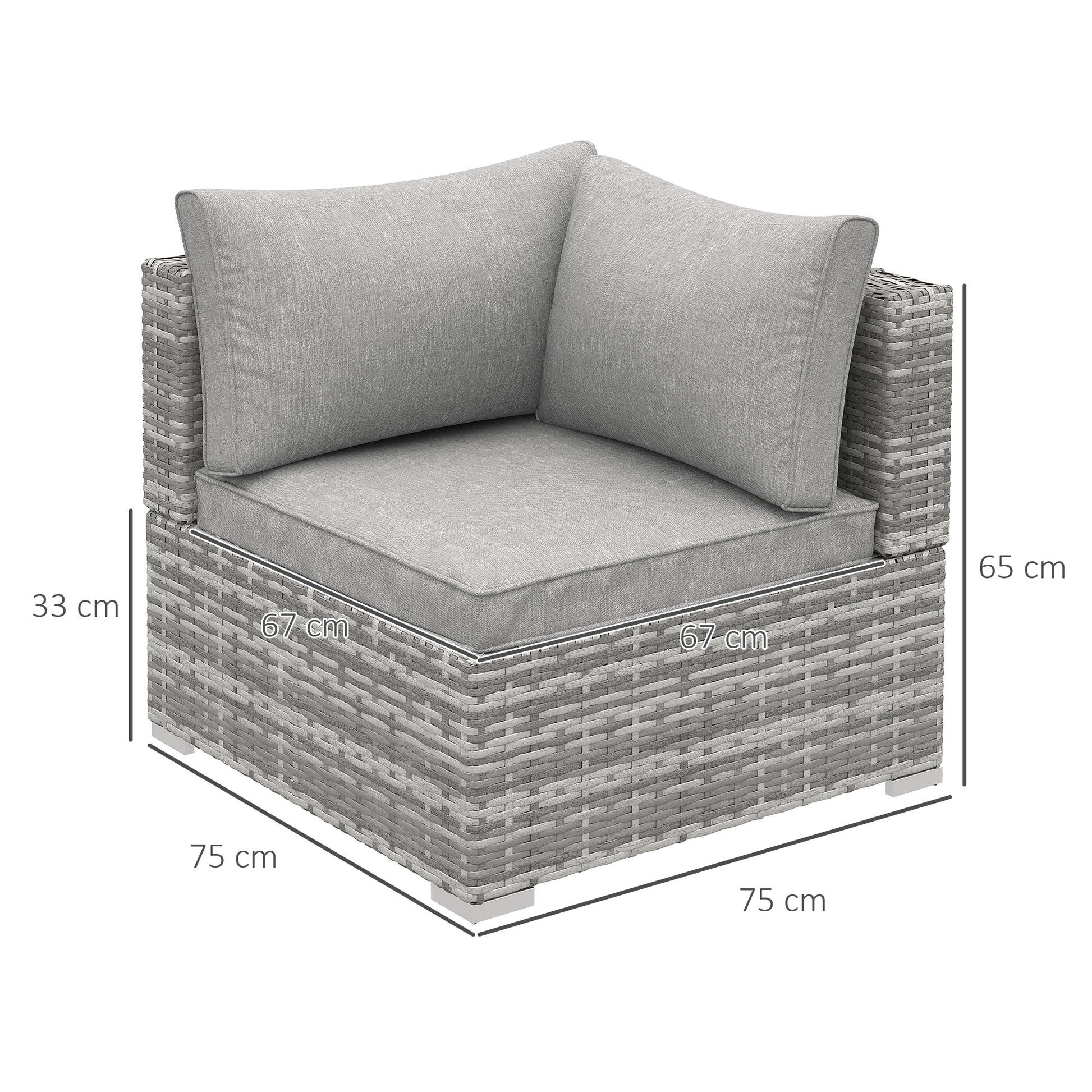 Outsunny Outdoor PE Rattan Corner Sofa, Garden Wicker Furniture Single Sofa Chair w/ Cushions, Light Grey