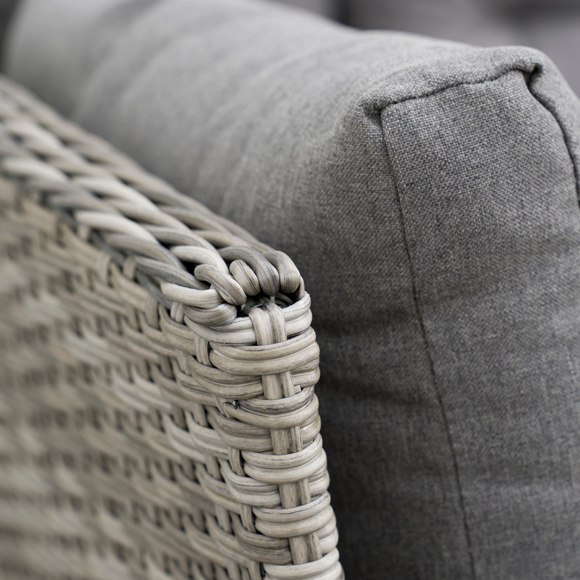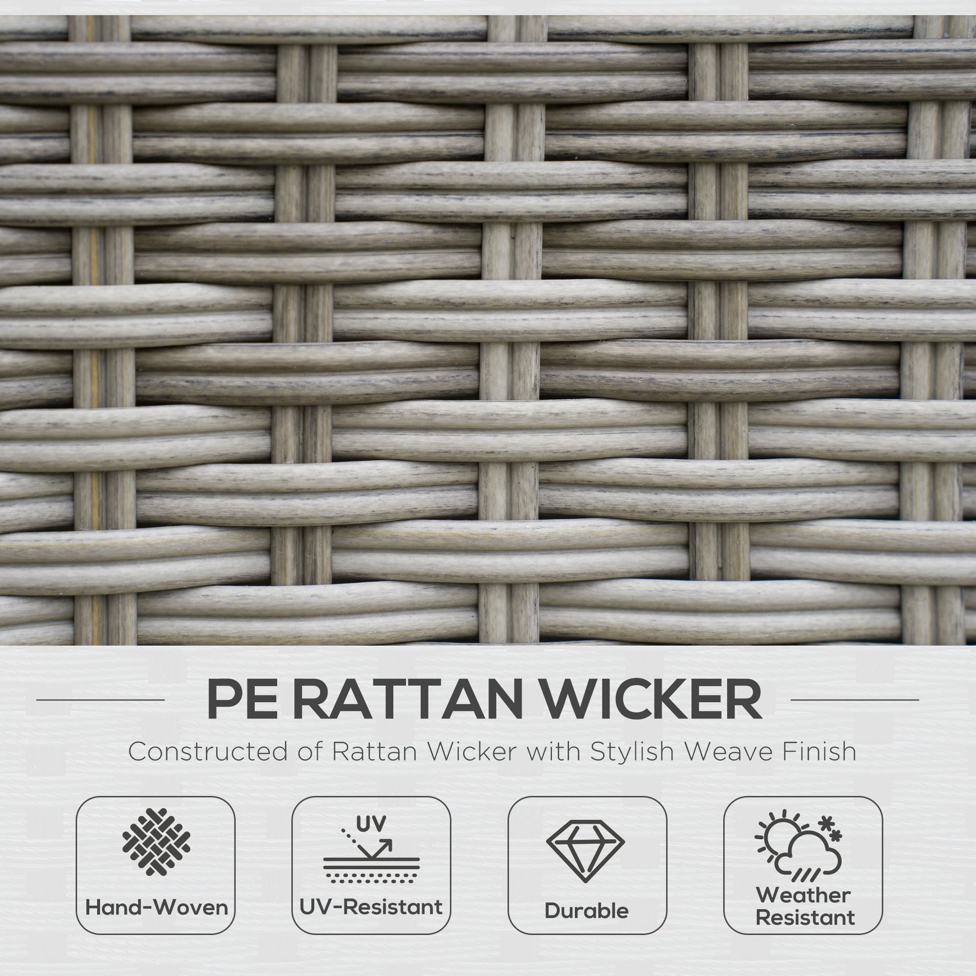 Relax together in comfort and style in this Outsunny rattan corner sofa set., Six pieces: corner chair, right-handed loveseat, left-handed loveseat, long footstool, square footstool and a liftable coffee table - arrange in a way you want. Metal frame for a strong core, wrapped in plastic rattan for support, durability and style. The table can be raised or lowered-dine at a level you want; comes with a wood-effect top for extra beauty.