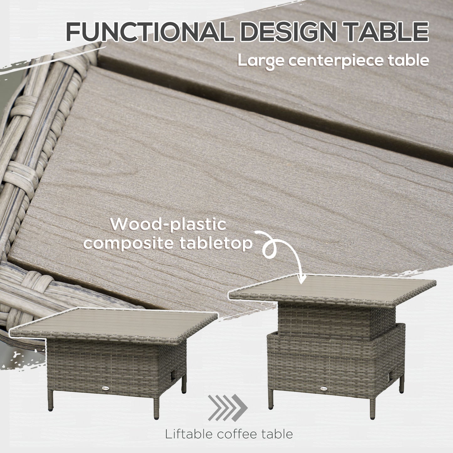 Outsunny 6 Pieces Outdoor PE Rattan Garden Furniture, Patio Wicker Sectional Conversation Corner Sofa w/ Soft Padded Cushion & Liftable Coffee Table, Grey