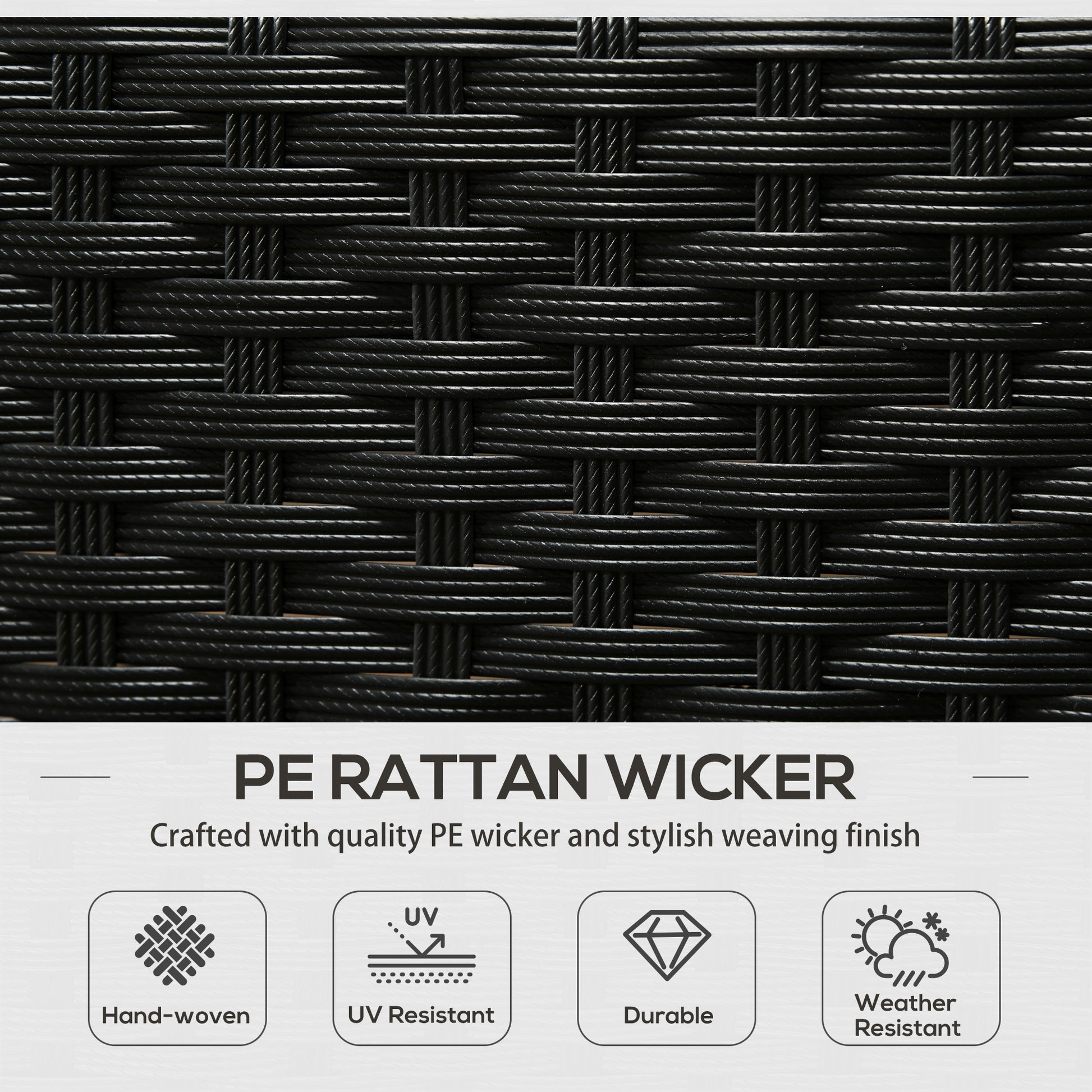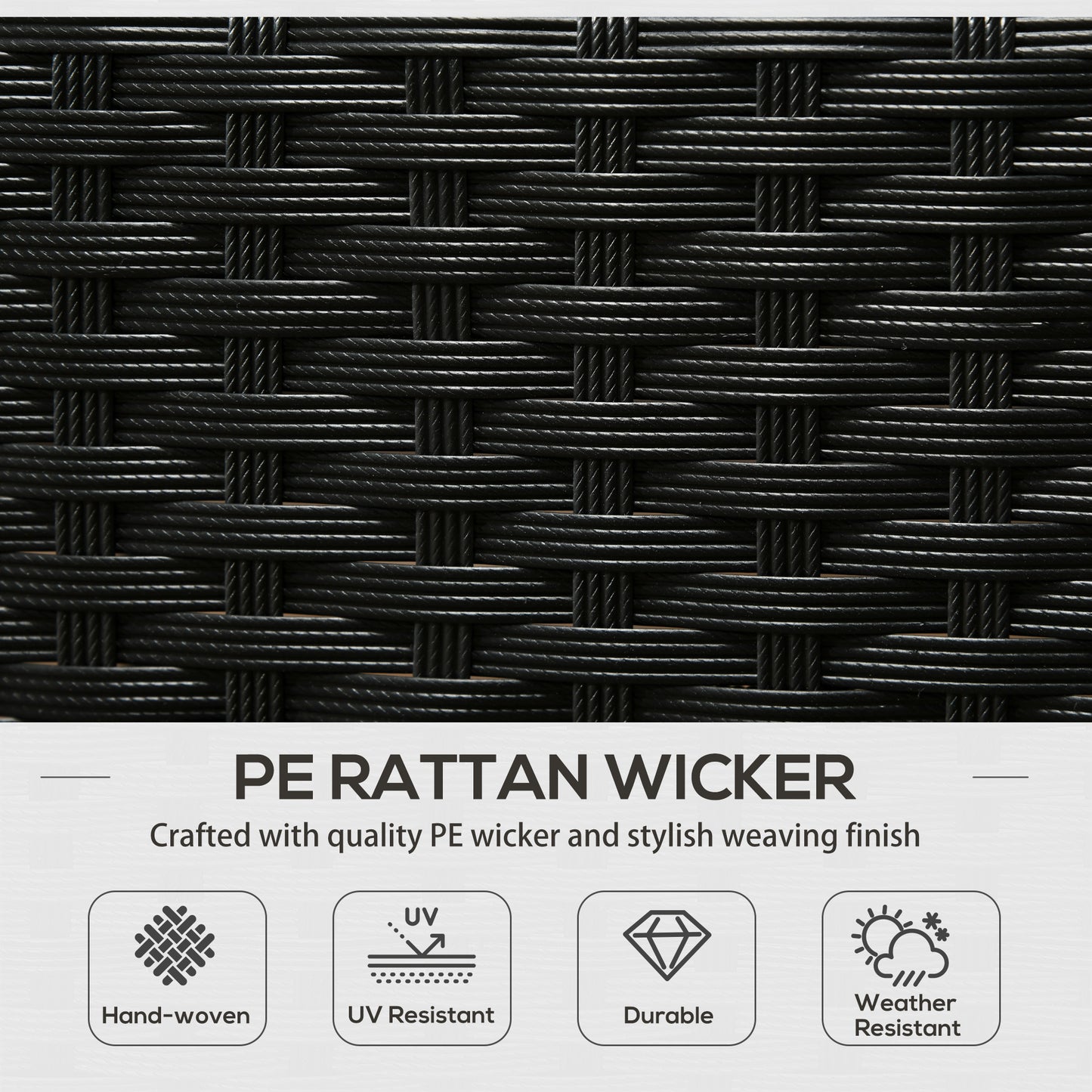 Your excellent company to gather round under the sun-say thanks to this Outsunny rattan garden sofa set. Each piece has a strong, powder coated steel frame, which is wrapped with plastic wicker-a stylish rattan look, which also protects the steel frame. Set comes with two armchairs, two footstools, a three-seater sofa and a matching coffee table. All seats and footstool come with padded cushions for comfort. Note: two people required to build this set.