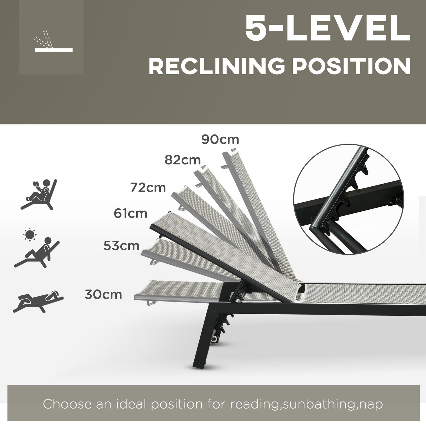 Outsunny Rattan Sun Lounger, with Five-Position Back - Grey/Black