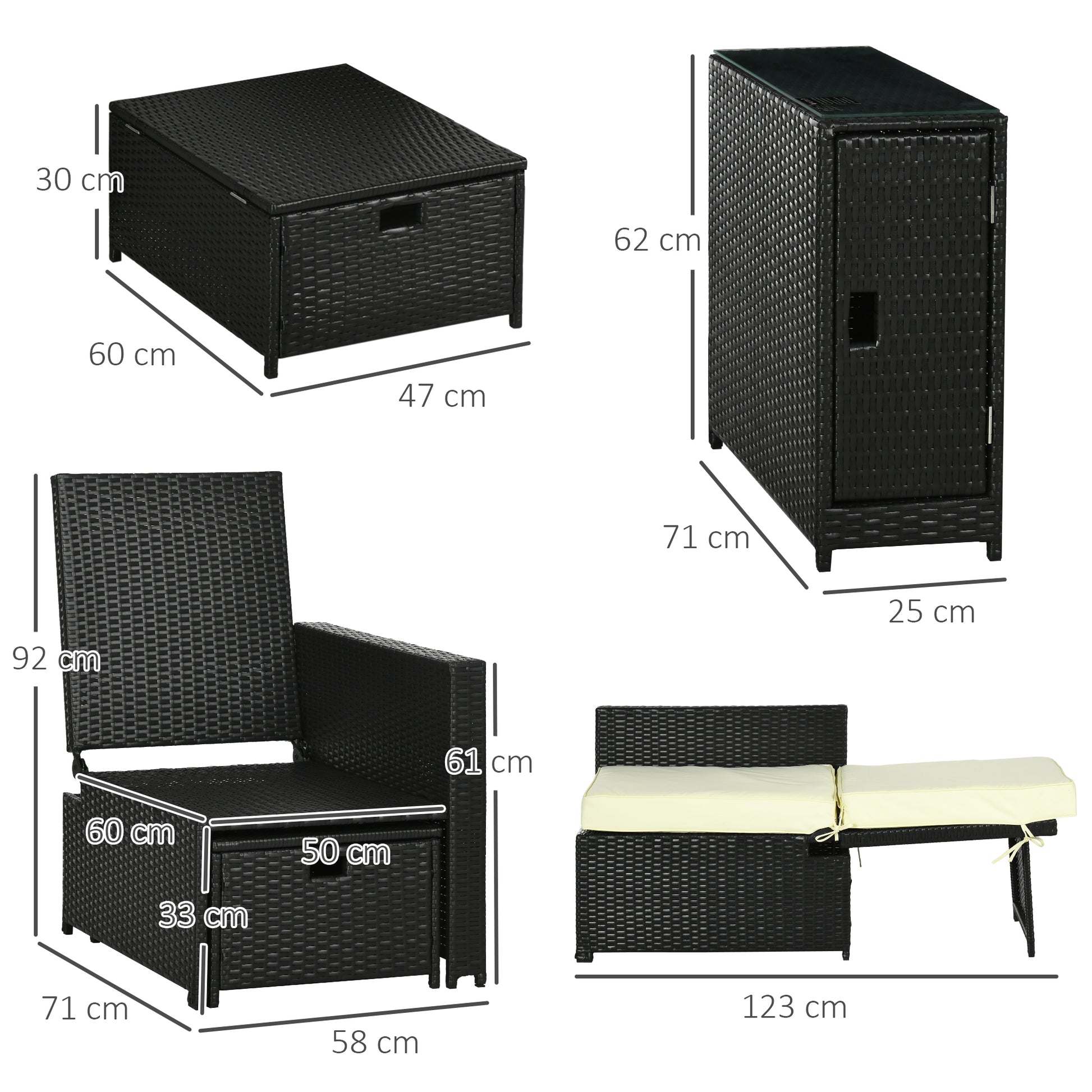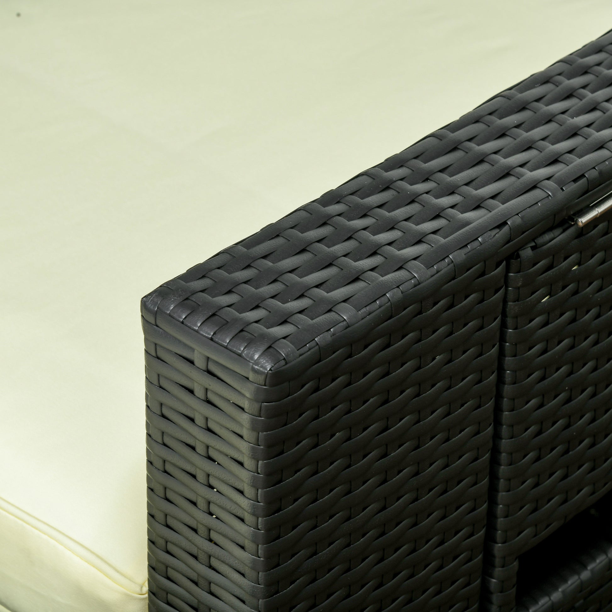 Outsunny 5PC PE Rattan Sun Lounger, Outdoor Wicker 5-level Adjustable Recliner Sofa Bed with Storage Side Table and Footstools, for Patio, Garden, Poolside, Black