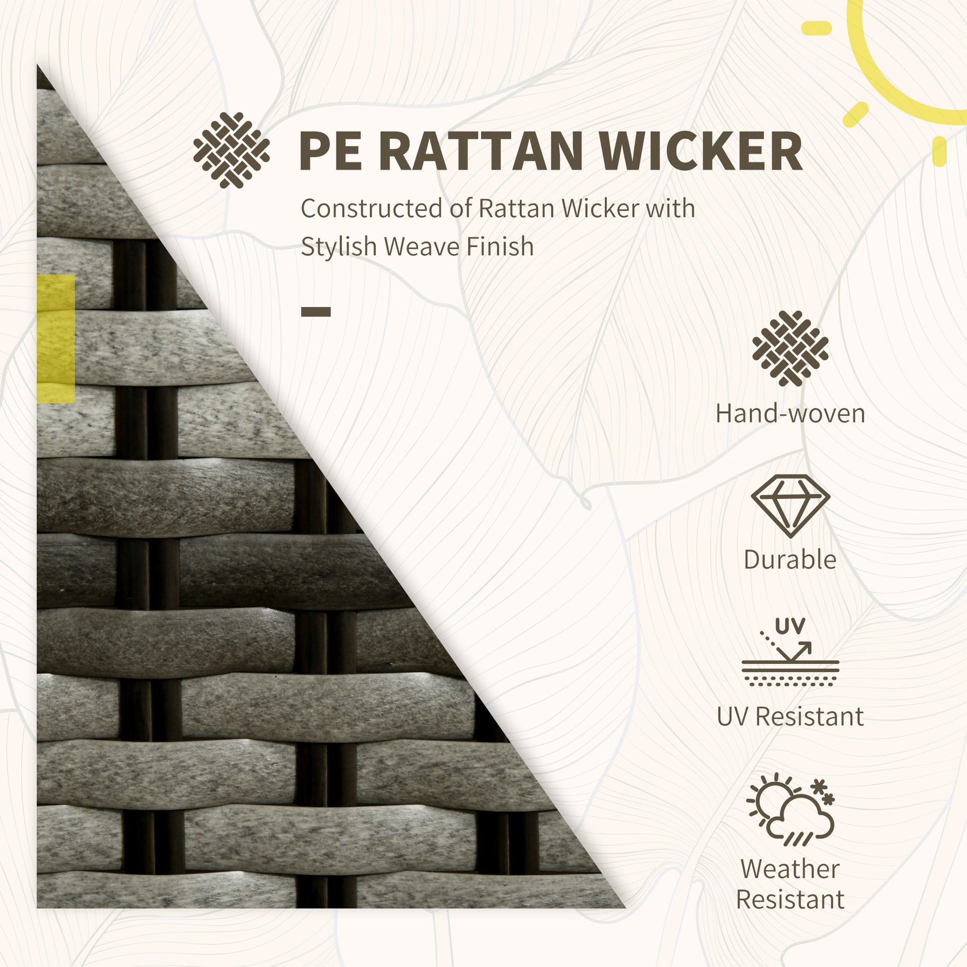 Do those lazy afternoons in the sun the right way β choose this rattan patio furniture set from Outsunny. Formed of three pieces β a garden table and two chairs; enjoy outdoors with company. Powder coated aluminium frame for a strong structure, wrapped in stylish plastic rattan - double the durability. Both chairs come with seat and back cushions for comfort.