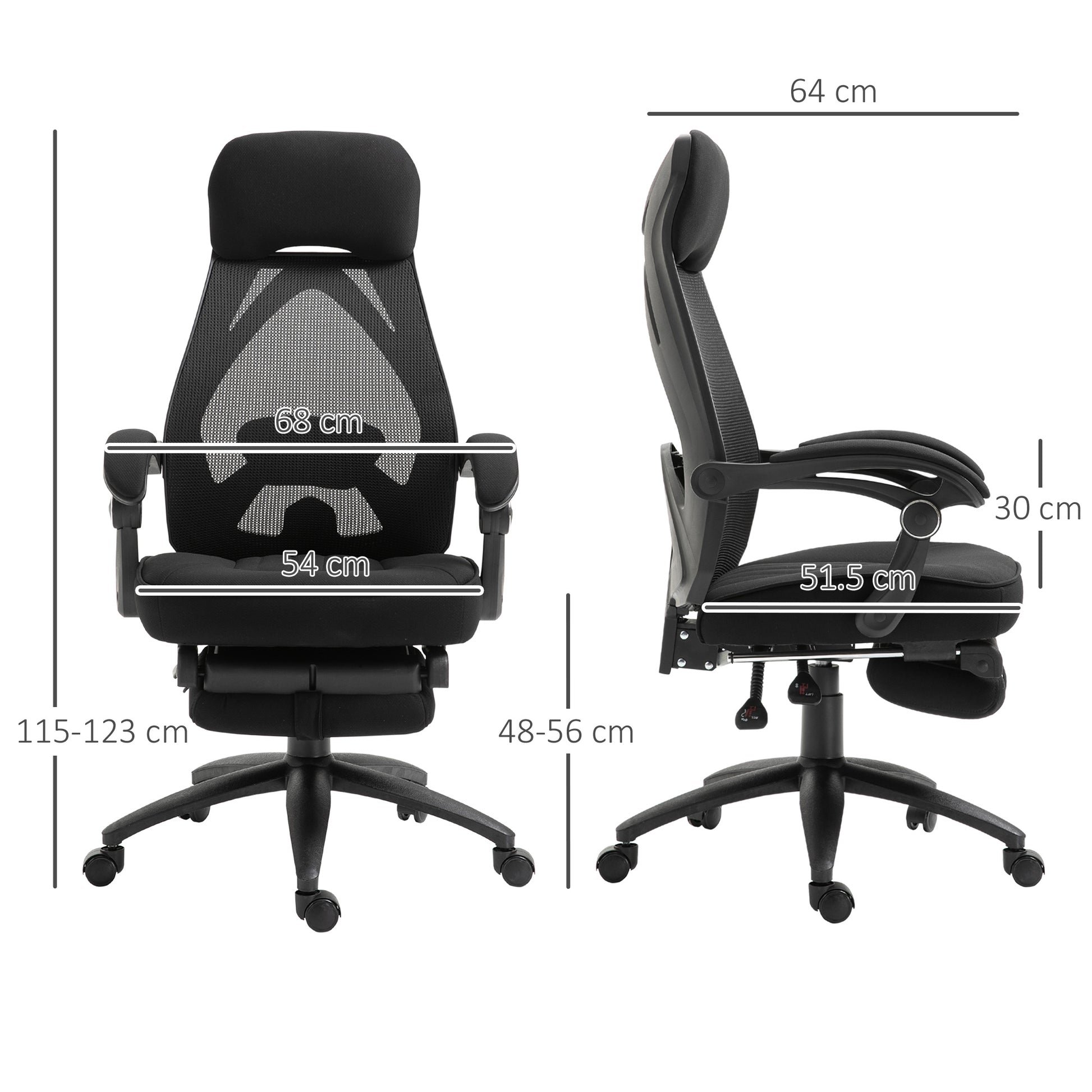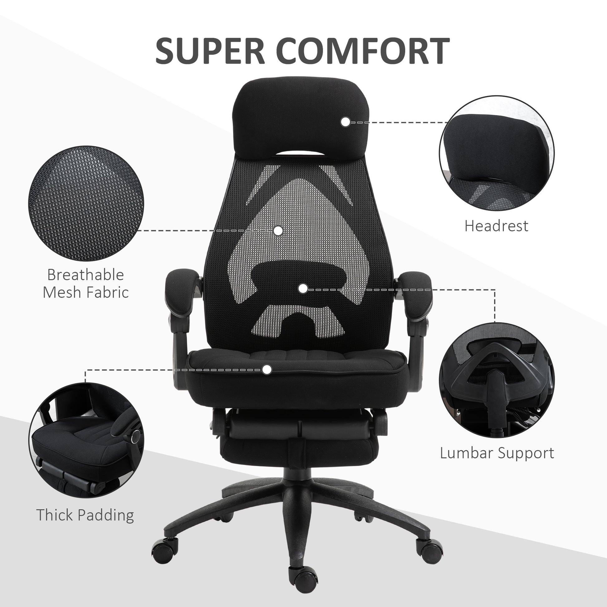 Vinsetto Office Chair with Footrest,High Back Swivel Desk Chair with Adjustable Height and Headrest for Home Office, Black