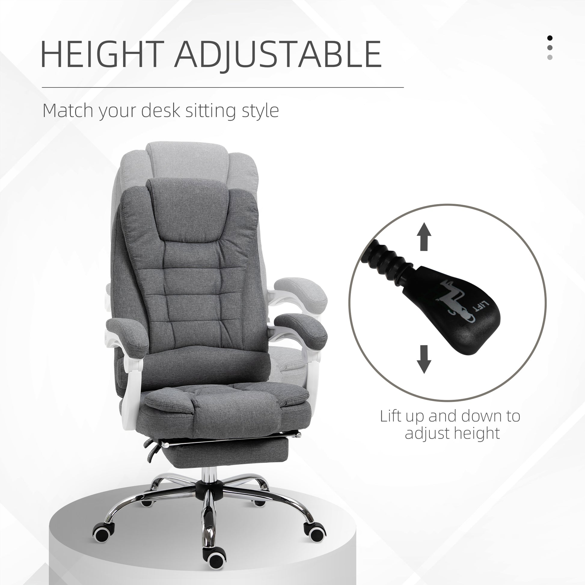 Vinsetto Office Chair, Computer Desk Chair, Linen Fabric Swivel Rolling Task Chair with Large Soft Padded Cushion, 135° Reclining Backrest and Retractable Footrest, Grey