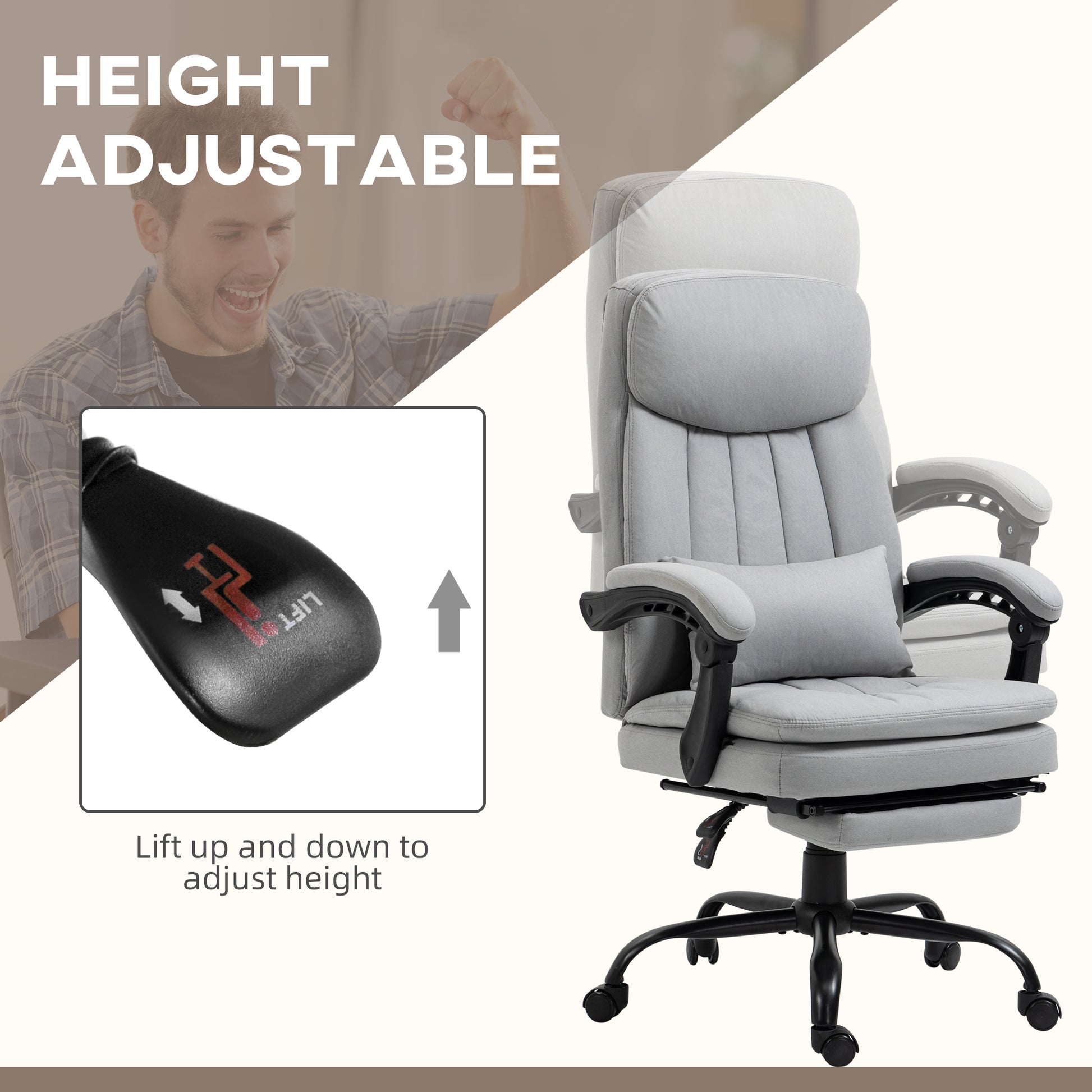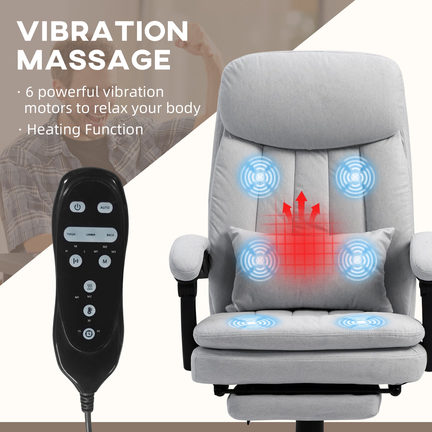Vinsetto Office Chair, Ergonomic Desk Chair with 6-Point Vibration Massage and Lumbar Heating, Computer Chair with Lumbar Support Pillow, 155° Reclining Back and Footrest, Grey