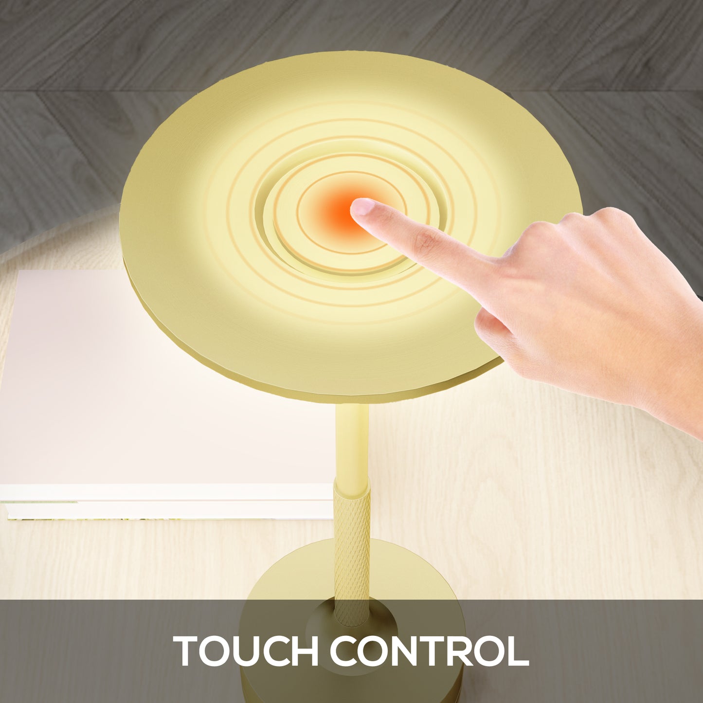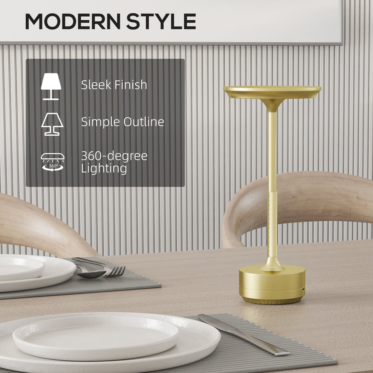 HOMCOM Cordless Table Lamp, Touch LED Desk Lamp with 4000mAh Rechargeable Battery, 3 Colour, for Bedroom Living Room, Gold Tone