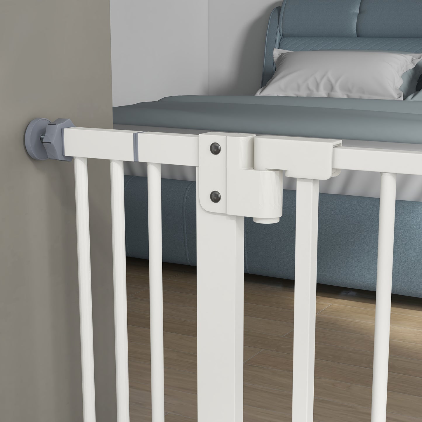 Need to keep pets away from certain places? This PawHut pet gate does the trick. Suitable for hallways, doorways and staircases, the width is adjustable for different sizes. Its metal frame stays in shape when in use, whilst the lead-free surface keeps pets safe. Door automatically closes and locks between 30° and 90°, so it isn't a problem if left slightly open. Accessories are included, making it easy to assemble – you can get your gate up instantly, so pets stop going to restricted areas.