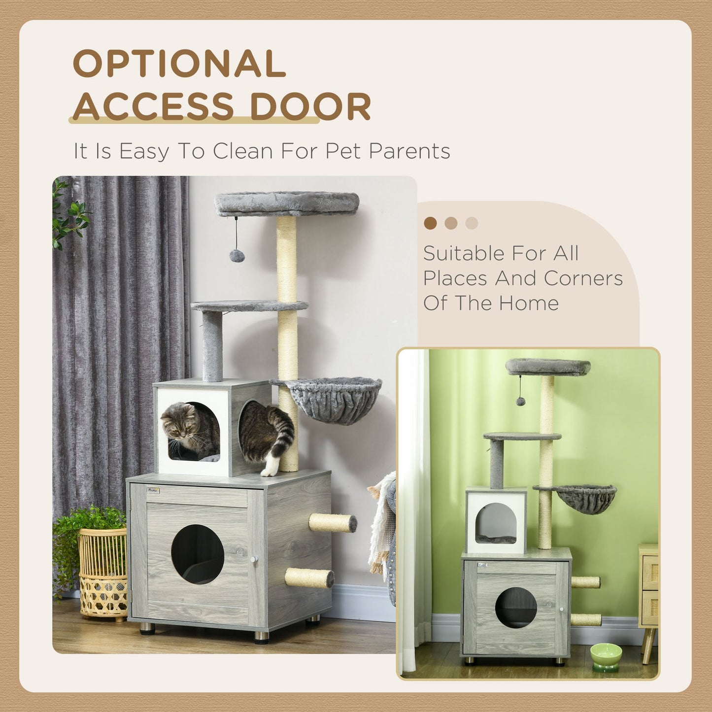 - 2 in 1 design, a cat tree and a cat litter box