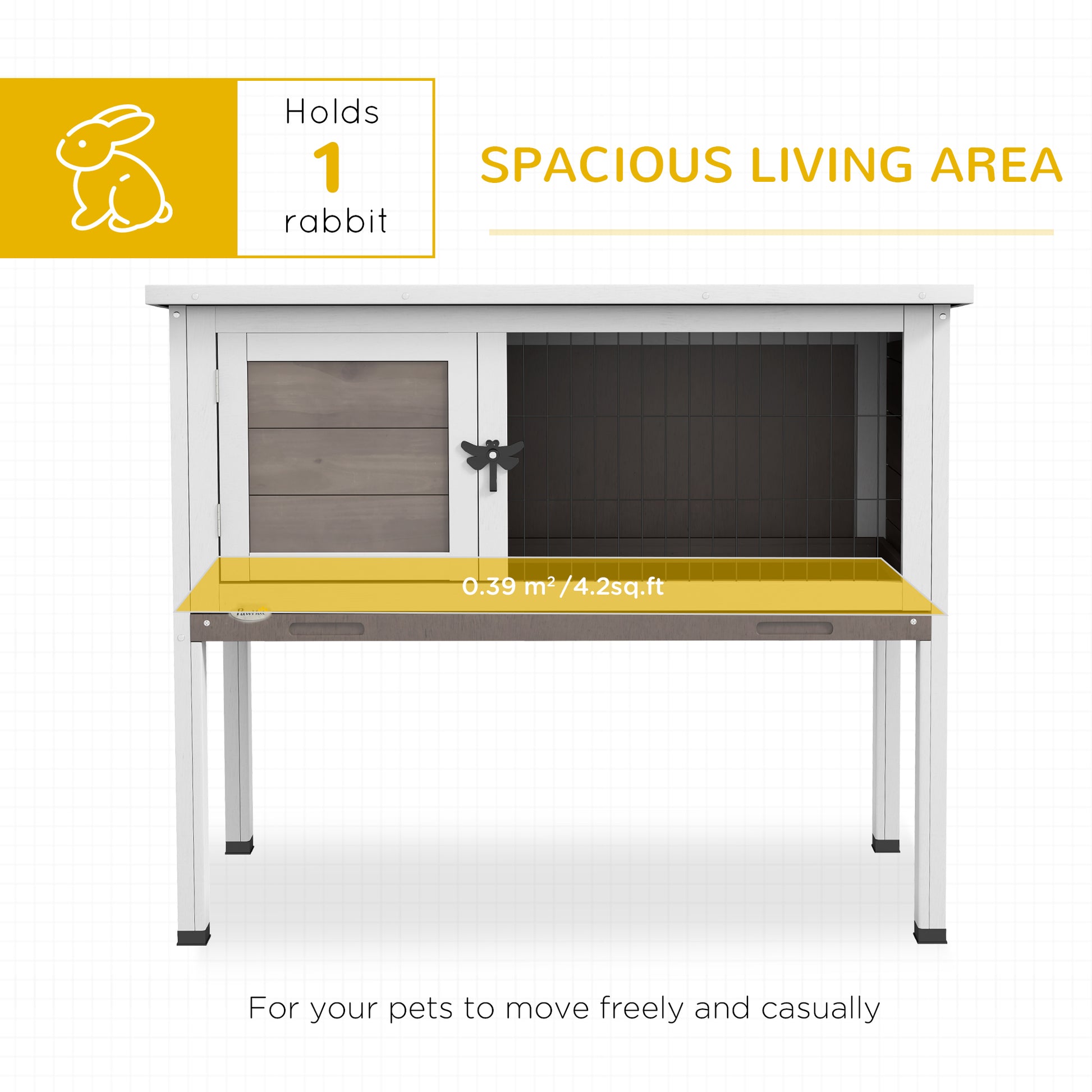 Give your small animals a safe and comfortable shelter with the PawHut small animal hutch. The hinged asphalt roof protects the elements and gives you easy access to the inside. A pull-out tray of the guinea pig cage makes regular cleaning quick and easy. This guinea pig house is an excellent addition to your patio, Garden, or other outdoor spaces and is easy to assemble with included instructions and necessary hardware. You and your pet will love this guinea pig house from PawHut!