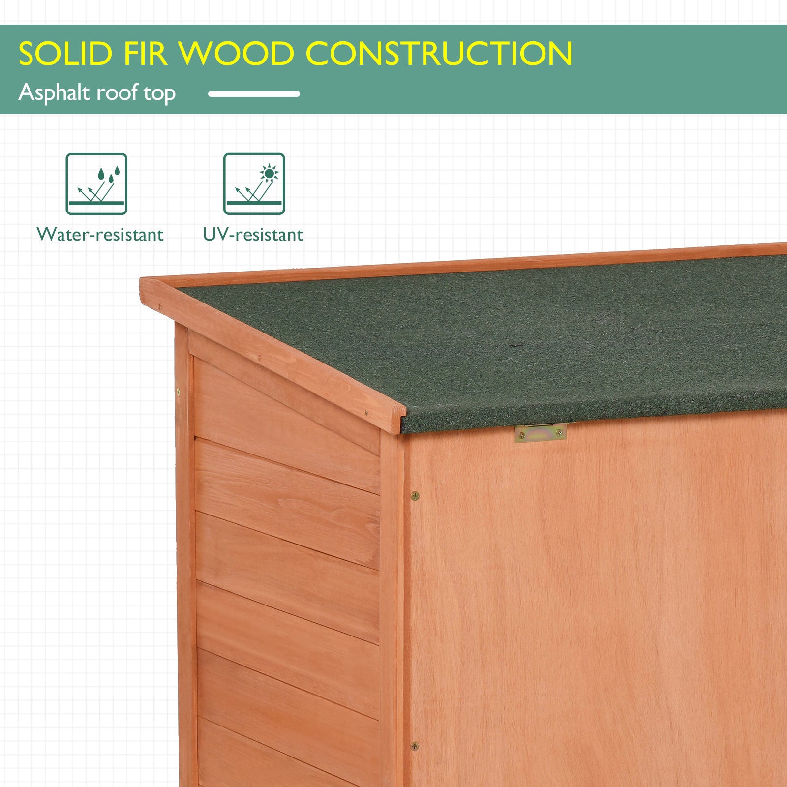 This outdoor elevated hutch from PawHut is perfect for housing rabbits, guinea pigs and similar-sized animals. The two-level house is cosy, gives them room to move around. Doors can be locked for safety. Features a slide-out tray and opening roof and doors, allowing you to get inside easily to clean and refill. It's made from natural fir wood for a tough structure and coated with paint for extra protection to the wood. Finished with a tilt roof which is covered in asphalt.